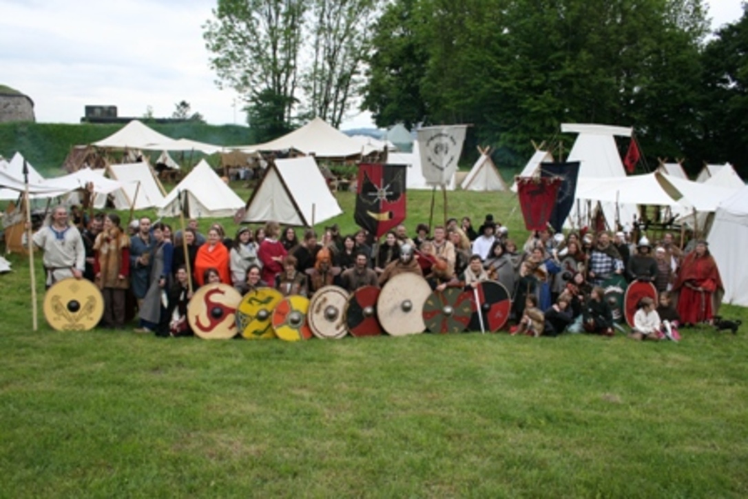 Ritterlager auf den Thingplatz. Feindlicher Angriff auf die Burg. Historisches Spektakel. Mitwirkende: Batavis Gladii.