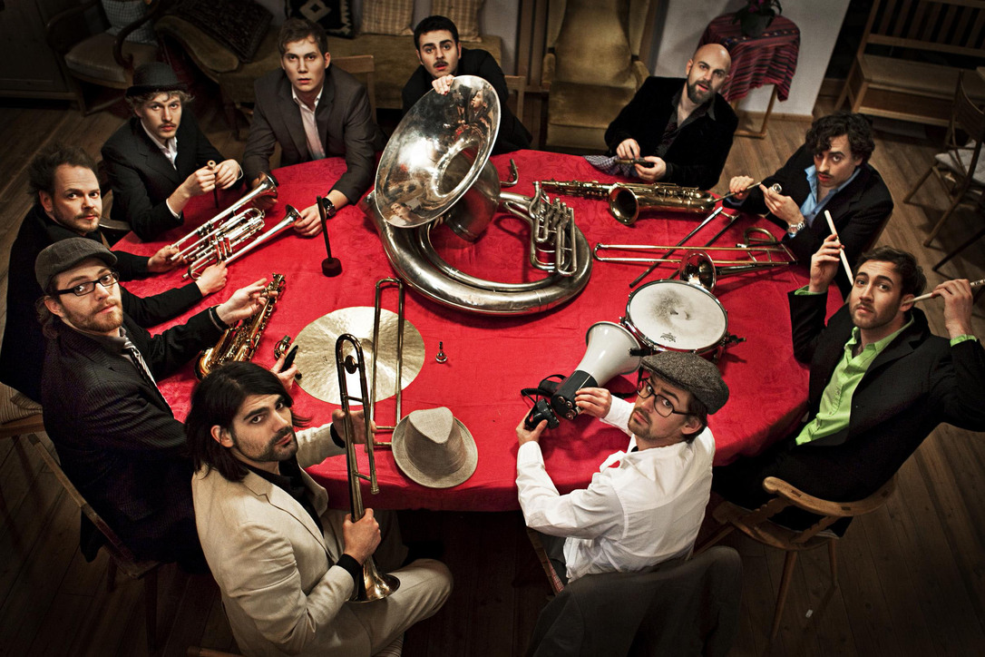 Straßenmusik-Philosophie und funkiger Protest-Hardcore-Hip-Hop: Die Urban-Brass-Band Moop Mama lässt mit Posaunen, Trompeten und manchmal auch Megaphon die Bühne beben.