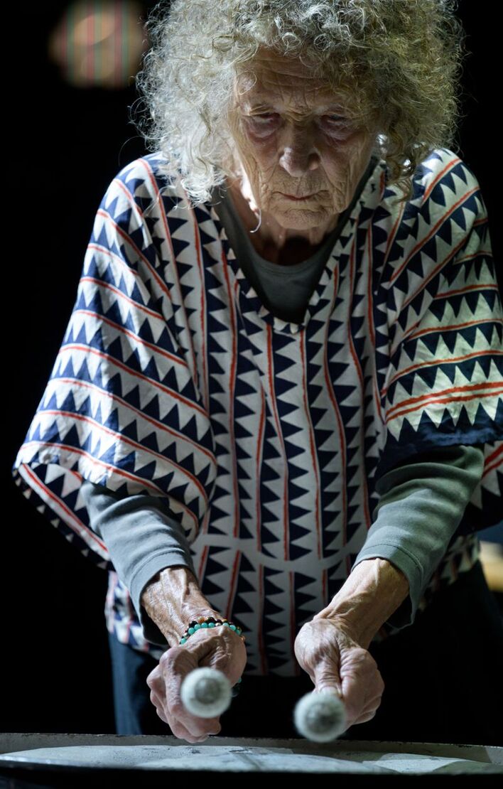 Die Klangkünstlerin und Komponistin Limpe Fuchs führt eine Soloperformance mit instrumentalen Installationen auf. Als Mitbegründerin von "Anima Musica" prägte sie die experimentelle Szene der 1960er und 70er Jahre.